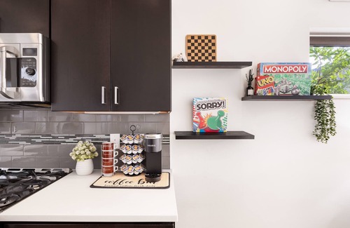 The fully equipped kitchen with a complete coffee setup with many brewing options allows you to add your own personality to each beverage.