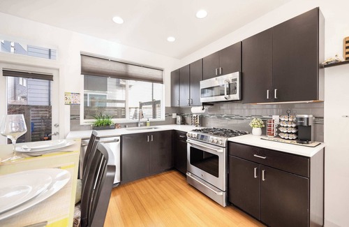 Welcome to your urban sanctuary! This chic 2BR/2.5BA (1,210 sqft) home blends modern design with comfort. Unwind in the master suite with a private balcony offering stunning mountain vistas. A dedicated office (large desk included) caters to business travelers and remote workers. Explore Fremont’s charm: steps from Sunday Market, Wallingford shops, Gas Works Park, Woodland Zoo, and Ballard Farmer’s Market. Commute stress-free—just 4 mins to I-99. Enjoy year-round comfort with 3 split AC units. Perfectly positioned for work and play!