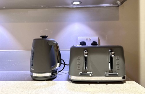 There is a well-equipped kitchen that incudes what you need for a everyday cooking and dining. There is a, washing machine, oven, gas hob, fridge, microwave, toaster, kettle, Nespresso coffee machine and more. We have provided you with a full range of utensils, crockery, and glassware so if you fancy a night in you can create a home dinner.
