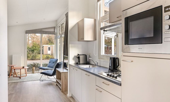 The detached Type A chalet Comfort 4 Boterbloem is suitable for up to 4 people. This chalet at Summio Landgoed Het Grote Zand has two bedrooms and one bathroom.