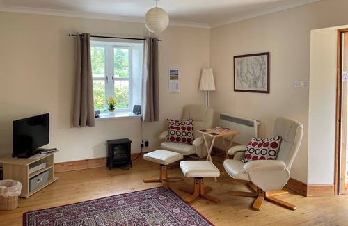 Bedroom: Double (4ft 6in) Bed Ensuite: Cubicle Shower, Toilet. Electric central heating, bed linen, towels and Wi-Fi included.. Fully enclosed front garden with garden furniture.Off road parking for 1 car. Please note: No children except babes in arms.. Sanna is a delightful detached cottage located in the hamlet of Ardentinny on the banks of Loch Long and the Firth of Clyde, near Dunoon. This stone built self catering cottage was formally the old village hall dating back to the late 1800’s. Now tastefully renovated into comfortable holiday accommodation for a couple, the cottage has wooden floors throughout, a double bedroom with en-suite facilities and a spacious open plan living space with kitchen, dining and seating area. The cottage also has its own enclosed gravel garden area and off street parking.Ardentinny is situated within Loch Lomond & Trossachs National Park and next to Argyll Forest which offers numerous forest tracks, marked walks and cycleways within this area, all easily accessible and right on your doorstep. The cottage has the additional benefit that it is only a short walk (200 yards) to gain access to the seafront where you can walk, fish, launch a canoe or just rest on the rocks, relax and enjoy the view.Shop 5 miles, pub and restaurant 50 yards.