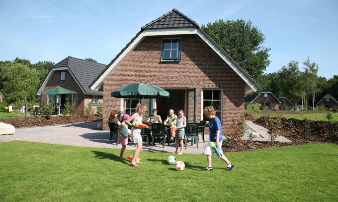 This detached bungalow is found in the wooded holiday park Landgoed Het Grote Zand, 1.5 km from the little village centre of Hooghalen. The lively provincial capital, Assen, is 11 km away. The bungalow is comfortable and fully furnished and consists of two floors. On the ground floor, you'll find a living room with TV and an open plan kitchen including a combination microwave and dishwasher. There's also a double bedroom and a bathroom with a shower and separate toilet (or one in the bathroom). The first floor has three double bedrooms and a second bathroom with a shower and toilet. All the beds are single box-spring beds, either pushed together to make a double bed or used separately in a twin-room setup. Outside you'll enjoy a garden with terrace and garden furniture. The bungalow has standard parking space for two cars. Various holiday homes for four to twelve people are available for rent at the Landgoed Het Grote Zand holiday park.
