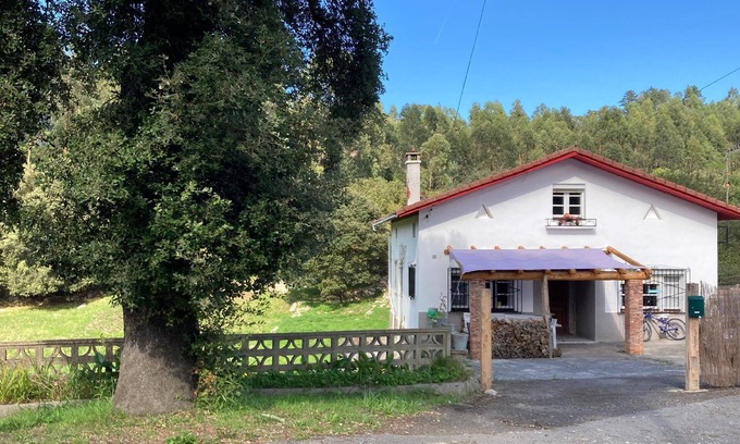 This detached white house is set in a quiet alley with a forest behind and barely 10 minute walk to La Franca beach, one of the 25 best beaches in Europe, according to The Guardian.La Franca is a village east of Asturias close to Picos de Europa mountain range, you can be on the beach and enjoy the mountain view. White sandy beach which uncovers its beauty even further in low tide. La Franca beach has all you need, an uncrowded beach with bars and restaurants, a river with clear waters, a forest view, and infinite crystal clear water, caves and extraordinary rock formations. In low tide you can walk along the coast to Bendía, a much wilder beach which is in low tide, is larger than La Franca. This beach has another access from the top and you can arrive to the end of the track at the top by car.The house has easy access to motorway and main roads, 2 restaurants open all year 5 min walk, plus a restaurant in the hotel by the beach.There is a small shop as part of the campsite on the beach. For further shopping, the petrol station nearby has a Carrefour express and cafeteria and 5 km away, Unquera, where you will find pharmacy, tobacconist, DIY shops, butchers, bakery, fish mongers, restaurants, cafes, grocery shops, etc..A smaller village; Colombres is even closer for post office, and small supermarket. this village is famous for its Indiano Archive and beautiful buildings built in the return of wealth made in the Americas.Other places of interest are Las Cuevas de Pindal, San Vicente de La Barquera, LLanes and all along the coast, inland beaches (Cobijero), caves, and waterholes ( to enjoy only in Autumn and Winter with big tides)