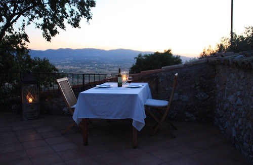 The house lies above the village of Pigge (midway between Trevi and Spoleto) and offers stunning views across the valley to Montefalco beyond. Secluded nooks and shady corners abound and below the large terrace, from where sunsets can be watched over a glass of red wine, the new swimming pool (12 by 4 meters) waits among the olive trees, romantically approached by a curving flight of stone steps. All the rooms in the main part of the house and the guest room are light and spacious and have been tastefully furnished and decorated. Beyond the house there are paths and tracks leading in every direction and the surrounding woods and groves are full of wildlife. Excellent restaurants serving local food, supermarkets and small shops all lie within 15 minutes drive in the still unspoiled towns of Trevi and Spoleto (which Shelley called the 'most romantic town in Italy').