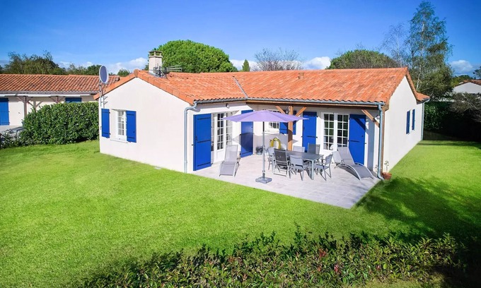 Accommodation: Beautiful bungalow (115m2) with wifi. The attractive stay has a comfortable seating area with digital TV with a large number of international channels. The fully equipped kitchen includes a dishwasher, an oven, a microwave, a refrigerator with freezer compartment, a coffee maker and a kettle, and the laundry room has a washing machine and a dryer. Each of the three spacious rooms has two comfortable single beds with spring box. There are 1 or 2 bathrooms with bath and/or shower. There are separate toilets. The garden is about 800m2 spacious so that children can play maximum. In the morning, enjoy breakfast together outside: fresh croissants, a baguette and orange juice or a cup of coffee. Real vacations! Several villas have a charging station to charge electric cars. If so, you can add it as an optional item. It's a standard catch like any other catch in the house. You may need to bring your own adapter.Your stay includes made beds.
