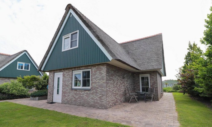 Detached villa with a patio and jetty next to open waters | Cabin in Makkum