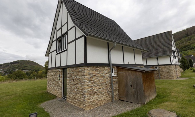 These comfortable detached villas are located in the beautifully situated Eifeler Tor Resort. The villa occupies two floors and is cosily furnished. On the ground floor, there is a spacious living room with flat-screen TV and a sitting and dining area. The fully equipped open plan kitchen offers a combination microwave and dishwasher. In the hallway, you will find a small bathroom with shower, a separate toilet, a sauna and a storage room. The first floor has three bedrooms, each with two single beds, with or without double-bed set-ups. One of the bedrooms features a flat-screen TV. The second bathroom features a bathtub, shower and a toilet. From this detached villa you have a view of Rursee and the beautiful surroundings. Outdoors, you'll find a furnished terrace. You can park your car in the central parking lot. This is located walking distance from your villa. The location of the Eifeler Tor Resort makes it unsuitable for people in a wheelchair. The part the villa is in is built against a hillside. This makes it less suitable for people with mobility problems. WiFi with limited speed is available free of charge. Viewing or downloading of videos is unfortunately not possible. At the Eifeler Tor Resort, various apartments and villas can be booked for four to twelve people.