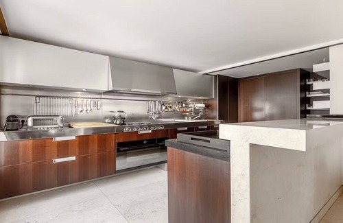 The apartment is a stunning exceptionally spacious triplex, with double-volume living areas, filled with natural light, and with very stylish interior design throughout. The accommodation also offers two kitchens and three double bedrooms, each with en-suite bathroom. The many amenities here include Wi-Fi internet, air conditioning, cable TV, and a washing machine and dryer. There is lift access to the apartment.