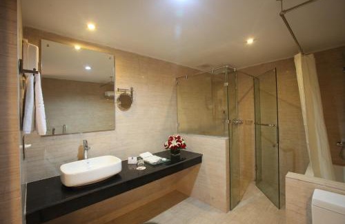 A 3-minute walk from the Baridhara Diplomatic Zone and Gulshan, Dhaka Regency Hotel & Resort offers rooms with free Wi-Fi. It also features a spa, lounge and 5 dining options. All rooms are air-conditioned and have a satellite TV, mini bar and electronic safe. Each room also includes a bathroom with shower, bathrobe and hairdryer. Located on Airport Road in the commercial area of Nikunja, Dhaka Regency Hotel & Resort is 1.9 mi from Hazrat Shahjalal International Airport and the airport railway station. Enjoy traditional Thai body treatments at the spa after a work-out at the hotel’s fitness center. Modern conveniences include a 24-hour front desk and room service. Grilled dishes are served at Grill on the Skyline, which features rooftop dining. Shisha World is a hookah lounge offering flavored tobacco.