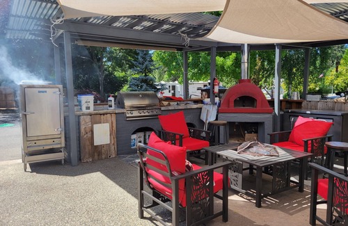 Guesthouse on a fully fenced and landscaped property located on a quiet cul-de-sac close to the Wild and Scenic Rogue River, Grants Pass, and within 2 hours of Crater Lake, the Redwoods, Oregon Coast and more. Guesthouse offers a fully furnished, spacious open floor plan with 2 queen beds to accommodate families, fishermen, rafters and more. Other amenities include an outdoor kitchen with pizza oven and smoker.