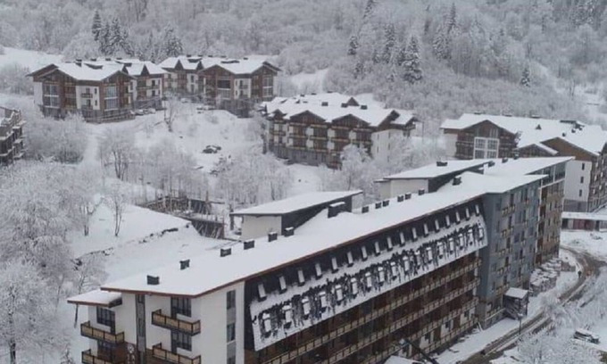 that apartment is the elite district in bakuriani, which is surrounded by beautiful views. left and right sides mountains. back side is forest. and front side ou can see panoramic view whole bakuriani. the apartment is close from ski track DIDVELI 200 meter. 5 minute for walking. fresh snow, fresh air. also for children ice skating and little tracks for learning skii. 20 meter from forest.