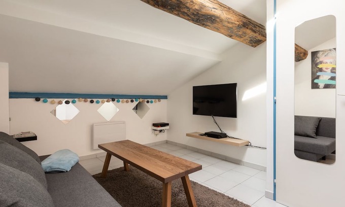 Apartment decorated with lots of character and ideally located in the heart of Lyon. The apartment is on the sixth floor (with elevator) of a beautiful building next to the train station Perrache and Confluence neighborhood and the banks of the Saone and the Rhone, ideal to discover the city of light.