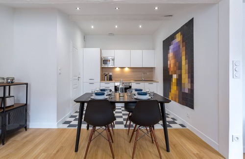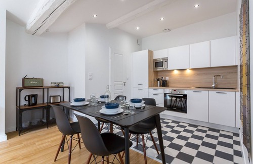 Apartment with lots of character, completely renovated and decorated by a prestigious architect. It is air-conditioned. You will be able to enjoy its brightness and tranquility during your stay. It has been designed with high-end amenities to satisfy your every desire. The apartment is located on the fifth floor without a lift.