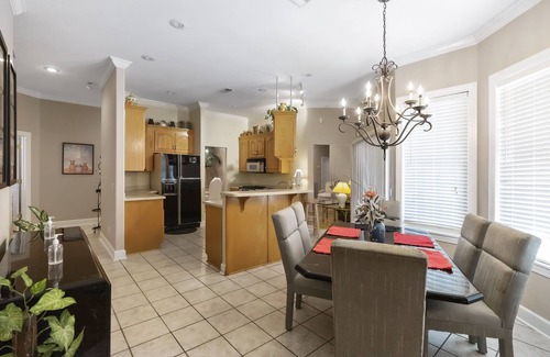 The most relaxing place in the South! this property has a large Family Room with patio, bathroom accessible to the patio. Large master bedroom with exercise equipment and private closets. Shower and tub separate with stall bathroom. Formal living room and dining room. large yard to protect your privacy. Outdoor furniture for relaxing, reading or writing. King, queen- and full-size beds in this 3 bedroom house.