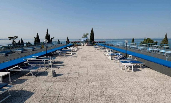The beautiful shared roof terrace with panoramic views of Lake Garda is equipped with sun loungers and parasols and is the ideal place to relax.