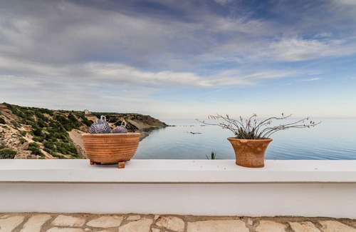 Seaside house located an hour drive (60kms) from Heraklion airport to the south 1.5kms away from Tsoutsouros village . It is on top of a headland at 25m above sea, separating two bays, with magnificent sea and mountain views of Crete's south.