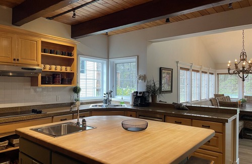 The home sleeps comfortably 11 adults and 2 children. Three bedrooms are located on the second floor and two in the daylight basement. On the main floor, there is an additional small bedroom that has a single twin x-long bed. The main floor has an open concept plan with a large kitchen and dining area, living room and a TV room that provide plenty of space and comfort for everyone. The kitchen is well equipped and has everything a chef might need. The house offers a gas fireplace, 2 smart TVs, cable, wireless Internet, DVD, and Xbox One. In the daylight basement, there is a spacious entertainment area with a professional pool table, a slot machine, bar and an additional sitting/TV area. The backyard has a beach access, sitting area with a fire pit, gas barbeque, and a deck for dining.