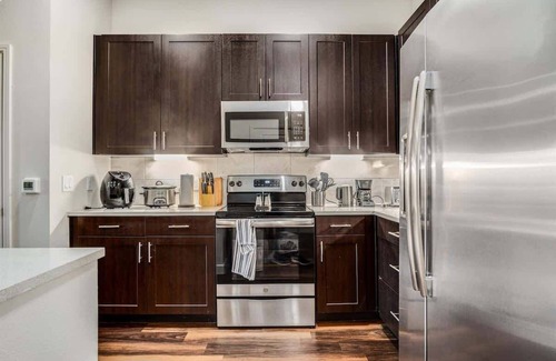You have access to your own stylish apartment. In addition, you can lounge by the resort-style pool, grill up some dinner at the BBQ courtyard, relax in the zen garden, work out in the fitness center, or enjoy one of the other fantastic, on-site amenities.