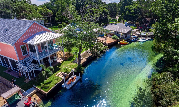 KEY WEST PARADISE ON WEEKI WACHEE RIVER! DIRECT RIVERFRONT NEW CUSTOM HOME. PRIME LOCATION WITH AMAZING SPRING WATER VIEWS FROM YOUR BALCONY AND ROGERS PARK BEACH! ALSO CHECK OUT OUR NEW ADDITION TO THE RIVER! LOCATED DIRECTLY NEXT DOOR IS RIVER MARGARITAVILLE! BRAND NEW CUSTOM RIVER HOME WITH ONE OF THE BEST LOCATIONS ON THE RIVER! VRBO ID 4262028! THIS 3 BEDROOM, 2 FULL BATHS, FULLY FURNISHED WITH ALL THE AMENITIES! 6 KAYAKS INCLUDED. HUGE OUTDOOR LIVING SPACE! SPOT OUR LOCALS, MANATEES AND WILDLIFE! BOAT OR FLOAT ON THIS 72 DEGREE RIVER YEAR ROUND! WAKE UP TO COFFEE ON THE BALCONY WHERE THE SCENES ARE PICTURE PERFECT. RELAX IN THE HUGE SCREENED PORCH ON A COMFY SECTIONAL OR SOAK IN THE HOT TUB. ENJOY PLAYING A CORNHOLE GAME. GAS GRILL AND SERVING TABLE INCLUDED! TERRIFIC LOCAL RESTAURANTS WITHIN WALKING DISTANCE WITH GREAT ATMOSPHERE AND LIVE MUSIC ON THE WEEKENDS! VISIT THE WEEKI WACHEE PARK, OPEN DAILY, AND SEE OUR LOCAL MERMAIDS. MARINAS NEAR BY WITH BOAT RENTALS AND FISHING GUIDES. PINE ISLAND BEACH IS 5 MINUTES AWAY. HOMOSASSA SPRINGS PARK, CHASSAHOWITZKA RIVER AND CRYSTAL RIVER ARE WITHIN 20 MINUTES. OUR NATURE COAST IS AMAZING AND PRISTINE. WELCOME TO COASTAL RIVER DREAMS!