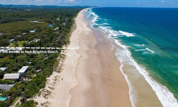 New Brighton Beach and weekly farmers market, South Golden Beach, and Mrs Birdy Cafe are all minutes away.