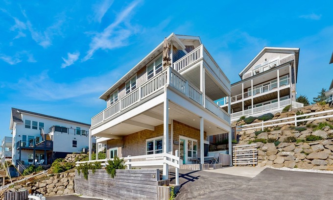 Perched on the stunning Oregon coast in Lincoln City, this spacious house offers a perfect retreat for families and friends looking to enjoy a beach getaway. With multiple levels, this home boasts breathtaking ocean views from the balcony and patio, where you can relax and bask in the coastal scenery while enjoying a soothing soak in the hot tub.