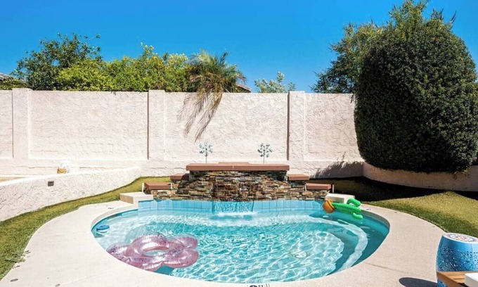 Welcome to your home away from home in the heart of Uptown Phoenix! Carefully designed for your peaceful retreat, our home offers relaxation and luxury all in one. Relax by the heated spa pool or enjoy mini golf while being close to the best of Phoenix-Scottsdale area. The home is located just steps away from Desert Ridge Marketplace and JW Marriott, and is a short drive to Old Town Scottsdale. Whether you're here with friends, family, or seeking solo solace, welcome to your Arizona retreat!