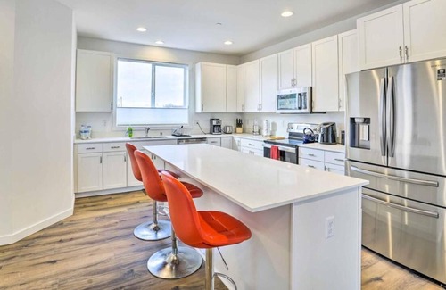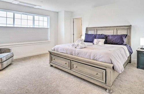 Bask in the opulence of the upstairs master suite, adorned with a sumptuous king bed and en-suite modern bathroom, complete with a walk-in closet. Upstairs on 3rd floor, and first floor 2 additional queen bedrooms with dedicated bathroom and Bedroom 3 has a Twin/Full Bunk Beds and a full-size crib provide a charming retreat for younger guests.