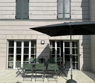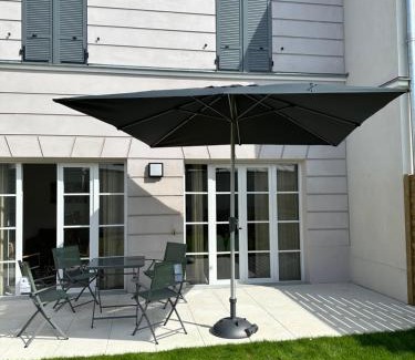 Providing a garden, Disneyland Paris, vallée village, Paris, villa, garden, Syline Home, 120 m2 features accommodations in Serris. Housed in a building dating from 2023, this vacation home is 2.2 miles from Disneyland Paris and 22 miles from Gare de Lyon. Free Wifi is available throughout the property and Val d'Europe RER Station is a 16-minute walk away. Featuring a terrace with garden views, this vacation home also includes a flat-screen TV, a well-equipped kitchen with a dishwasher, an oven, and a microwave, as well as 2 bathrooms with a bath and a hair dryer. The property has an outdoor dining area. Opéra Bastille is 23 miles from the vacation home, while Pompidou Center is 23 miles from the property. Paris - Charles De Gaulle Airport is 15 miles away.