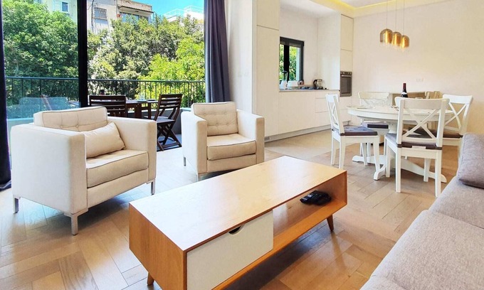This apartment sits in a brand new building in the heart of North Tel Aviv a few blocks from Hilton Beach. The rental fits five guests comfortably so it is well-suited for a family or a group of friends.Offering a unique experience in Tel Aviv, the large windows and cozy furniture make this apartment perfect for a relaxing beach holiday in the city.