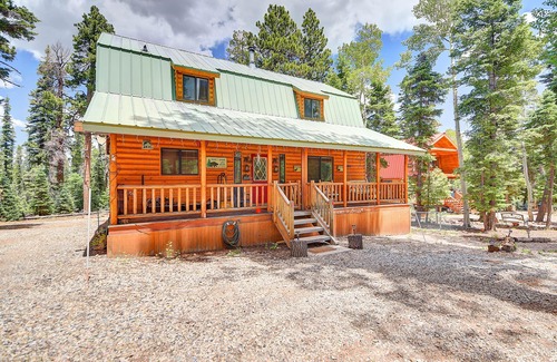 This Cabin is nestled in the woods above Duck Creek Village It has a large covered front porch with swing, and back Porch with rocking chairs, picnic table out on back covered porch to watch the wild life. Walking into the cabin you will find a large living room for the whole family to snuggle in to watch a movie together. Along with a Newly remodeled large kitchen with a log wood table for that family dinning. You will find the Master bedroom with king log bed downstairs and 3 bedrooms upstairs with log beds. Very large Lot for plenty of outside fun.