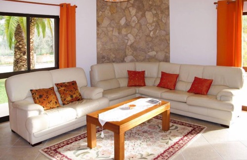 "Do Lagar", 5-room house 160 m2 on 2 levels. Bright, tasteful furnishings: living/dining room with open-hearth fireplace, dining table, satellite TV and DVD. Exit to the terrace. 1 room with 1 french bed (150 cm). 1 room with 1 french bed (160 cm). Kitchen (4 hot plates, oven, dishwasher, kettle, microwave, freezer, electric coffee machine). Exit to the terrace. Shower/WC. Upper floor: (spiral staircase), 1 room with 2 beds (90 cm, length 200 cm), shower/WC. Exit to the balcony. Electric heating. Heating not available in all rooms. Balcony 35 m2, terrace. Terrace furniture, barbecue, deck chairs. Facilities: washing machine, iron, children's high chair, baby cot. Internet (WiFi, free). Please note: non-smokers only. 19264/AL
