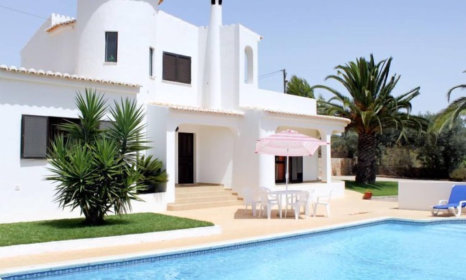 House "Do Lagar", detached, surrounded by meadows and fields. 3 km from the centre of Carvoeiro, 3 km from the centre of Lagoa, 3 km from the sea, in the countryside. Private: property 12'000 m2, beautiful garden with lawn and trees, orchard, swimming pool angular (9 x 4 m, depth 110 - 230 cm, seasonal availability: 01.Jan. - 31.Dec.) with internal staircase. Outdoor shower. In the house: roof terrace. Storeroom available. Parking on the premises. Shop 800 m, supermarket 1.2 km, restaurant 500 m, sandy beach 3 km, outdoor swimming pool 6 km. Golf course (9 hole) 1.4 km. Please note: the owner lives on the same property.