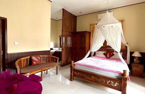 Dodit House is located in Ubud, just 1.8 miles from Neka Art Museum and 2.7 miles from Ubud Monkey Forest. Featuring pool and garden views, this guest house also features free Wifi. Staff on site can arrange a shuttle service. This air-conditioned guest house comes with a seating area, a fully equipped kitchenette with a fridge, and a flat-screen TV. This guest house also comes with a terrace that doubles up as an outdoor dining area. The guest house offers bed linen, towels, and daily room service. A mini-market is available at the guest house. Guests can enjoy the outdoor swimming pool and garden at the guest house. Popular points of interest near Dodit House include Blanco Museum, Saraswati Temple, and Ubud Palace. Ngurah Rai International Airport is 21 miles from the property, and the property offers a paid airport shuttle service.