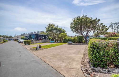 Stay a few steps away from the beach at the beautiful Pacific Shore Motorcoach Resort near Newport, Oregon.