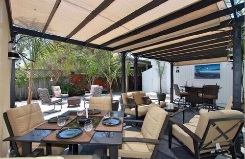 Enjoy our recently remodeled 1913 private beach bungalow for your visit to San Diego. It is ideal for a couple with or without dogs. Our place is fenced in with a PRIVATE backyard great for grilling, outdoor dining, and lounging. The house is less than a block to the beach and walking distance to lots of activities and restaurants. With a Weber gas grill, dry bar, hot tub, and comfy seating in the sun or shade it is easy to spend more time outside than in. The inside is cozy and well equipped with a full kitchen, couch, recliner, 1.5 baths, wireless portable speaker, and a king size bed. All living space is on the first floor. Wireless internet can be accessed from inside and out.