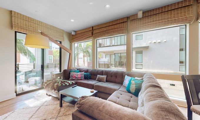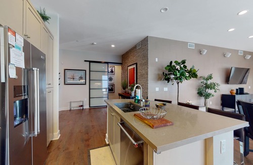 When you're ready to relax, head back to your stay and lounge in the spacious, light-filled living room. Here, you can tune into your favorite TV show or movie while the chef of your group shows off their culinary skills in the full kitchen. Cooking will come naturally here with the suite of stainless steel appliances, ample meal prep space, and the center island in assistance.