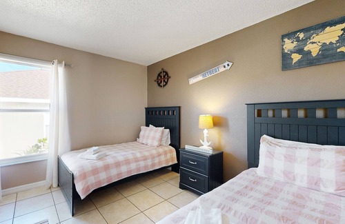 This stunning gem boasts a screened outdoor pool where you can cool down and swim to your heart's content. The screened pool deck also features a poolside seating area and a gas grill, perfect for summertime barbecues. Inside, this air-conditioned home away from home enjoys a split floor plan with two separate living areas where you can spread out comfortably and plan your next adventures or enjoy an entertaining evening streaming fun shows and movies on the smart TV. The spacious kitchen is equipped with all the essentials to prepare everything that comes to mind and includes a Ninja coffee maker and an air fryer. The spacious main suite has a smart TV and a tastefully designed en suite bathroom.