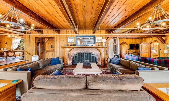 Looking for a vacation rental to accommodate your large group? The Lodge at Little Beach has you covered! Up to 18 guests will enjoy convenient home comforts, including a private washer/dryer, free WiFi, a gas fireplace, and generous outdoor spaces. A maximum of two dogs are also welcome at this home (please note an additional nightly pet fee applies).