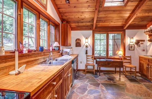 This home abounds in amenities both outside and in. Note the charming and delightful lawn and two stone patios, along with a private dock, outdoor firepit, and front deck with lake views. Inside, revel in the cozy convenience you'll get with two wood fireplaces made of stone, free WiFi, three cable TVs, and DVD/VCR/CD players. In addition, guests of the master bedroom will be treated to a restful night's sleep on the brand new mattress.
