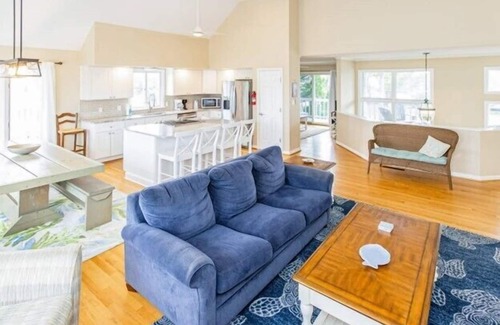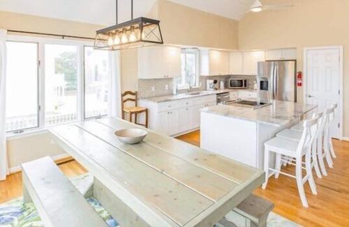 Following Seas is a unique getaway for a fun family vacation. You will find yourself just steps away from the beach. When you arrive, you'll be greeted by a bright interior and a cozy atmosphere throughout the home. Pride in ownership abounds! Relax... read a good book on the plush furniture, stream your favorite shows on the TV, or enjoy grilling out and serving a sunset meal on the second floor deck. Comfortable bedding & spacious bedrooms ensure that everyone will enjoy a great night's rest. On the first floor of this home, you will find 2 spacious bedrooms. The first bedroom is a Queen, while the second has 2 sets of Twin Bunkbeds. These bedrooms have access to a shared full bathroom. On the second floor, you will find the two main living areas, kitchen, and a King Bedroom with ensuite Bath.