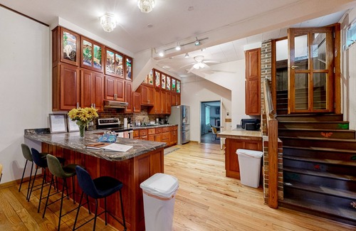 Every space feels roomy enough for a crowd, from the expansive kitchen to the multiple decks overlooking the natural scenery. Spend mornings sipping coffee on the outdoor swing, afternoons barbecuing on the gas grill, and evenings telling stories by the fireplace before retreating to the steam shower in the primary bathroom. Additional amenities include two refrigerators, a washer/dryer, complimentary WiFi, and smart TVs throughout the house.