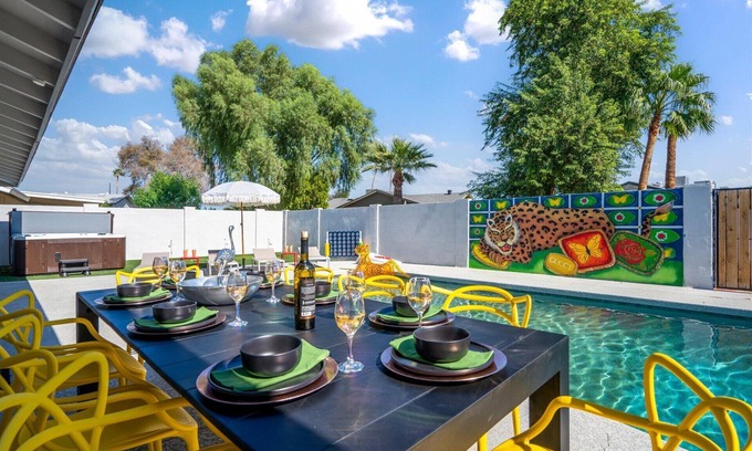 Dog-friendly Stylish Escape with pool, Hot Tub, BBQ, ping pong, games and more! is located in South Scottsdale. Dog-friendly Stylish Escape with pool, Hot Tub, BBQ, ping pong, games and more! provides accommodation, featuring Child Friendly, Pool, Barbecue/Outdoor Cooking, among other amenities. This House features Child Friendly, Pool, Barbecue/Outdoor Cooking, to make your stay a comfortable one.
