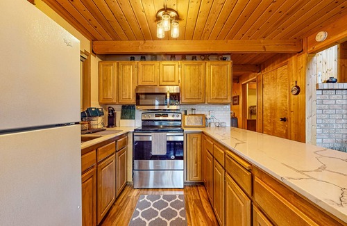 Begin each quiet morning outside on the deck, where you can sip your coffee up among the evergreen treetops. It's the perfect spot to return to on summer evenings, to light the gas grill and dine alfresco with the sounds of the forest as your soundtrack.