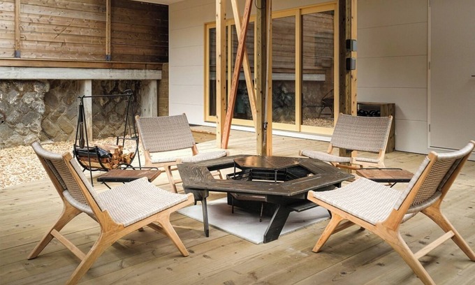 Located in Yugawara Town the southernmost point in western Kanagawa Prefecture THE BASE GLAMPING YUGAWARA is a private outdoor hotel with 10 buildings located within the Yugawara Onsen hot spring resort one of the oldest hot spring resorts in the Kanto region boasting an abundance of highquality natural hot springs Conveniently located near Atami and Hakone guests can fully enjoy the natural beauty of this hot spring resort surrounded by sea and mountains The facilitys signature wooden deck bonfire area is adjacent to each buildings bedroom and openair bath each with its own natural hot spring water creating a secret hideawaylike space where guests can enjoy complete freedom Combining a highquality outdoor experience with a private space this glamping facility is popular with many guests as the ideal destination for a refreshing vacation Why not experience the ultimate in natural hot spring glamping in Yugawara Onsen one of the Kanto regions most popular hot sprin / A room where you can bring your dog and has a hot spring for dogs