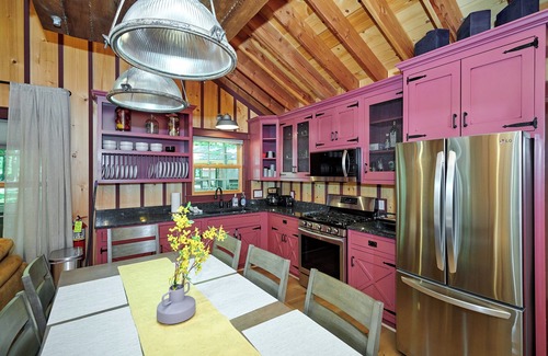 This home boasts three beautifully furnished bedrooms, each with a luxurious king-size bed and its own private ensuite bathroom, providing plenty of room to unwind and recharge. For additional sleeping arrangements, a lofted space above the primary bedroom offers a cozy retreat, though it's worth noting the staircase leading up is steep and may require extra care. Designed with accessibility in mind, the cottage features a convenient ramp entry and a primary bathroom with a zero-entry shower, ensuring comfort for all guests.