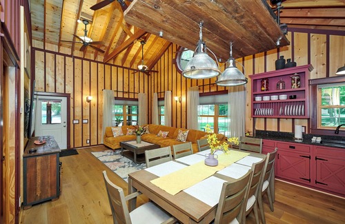 Set amidst Michigan's picturesque countryside, Dollybrook is a tranquil retreat offering 30 acres of peaceful beauty. Just a short drive from Saugatuck Douglas (7 miles) and South Haven (14 miles), this serene getaway features nine distinctive cabins, each thoughtfully designed to combine modern conveniences with the timeless allure of nature. At Dollybrook, there's something for everyone. Cool off in the refreshing pool, challenge your group to a friendly basketball game, or gather around the crackling fire pits for evenings of stories and marshmallow roasting. Immerse yourself in the great outdoors with forested trails perfect for wandering, quiet moments by the pond, or simply soaking in the serene atmosphere.