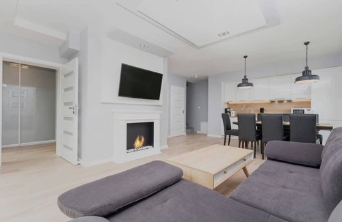 Apartment B in the luxurious Posejdon house is the perfect place for a family or group of friends. Two bedrooms and two bathrooms guarantee privacy and comfort. The spacious living room with a kitchenette is ideal for cooking together and relaxing. Guests can enjoy the garden with a barbecue and a playground for children. The SPA area is open to guests, and the Jacuzzi included in the price of your stay ensures complete relaxation after a day full of attractions. This is a place where you will feel at home and create unforgettable memories.