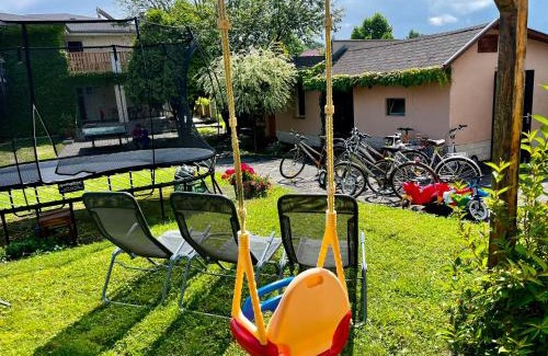 23 miles from Agrokomplex Nitra in Podhájska, Dom v Záhrade features accommodations with access to spa facilities, beauty services, and fitness room. This beachfront property offers access to a terrace, table tennis, free private parking, and free Wifi. The accommodation offers a 24-hour front desk, an ATM, and currency exchange for guests. The units have a fully equipped kitchen with a fridge, kettle, and kitchenware. At the guest house, units are fitted with a private bathroom and bed linen. Guests at the guest house can enjoy a continental breakfast. There is a coffee shop and lounge. For guests with children, Dom v Záhrade provides indoor and outdoor play areas. Guests can also warm up near the outdoor fireplace after a day of cycling. Mojmírovce Manor House is 23 miles from the accommodation. Piesťany Airport is 74 miles from the property.