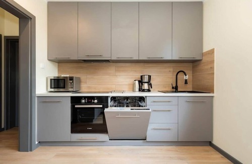 The house can comfortably accommodate up to 14 people - perfect for large groups! Viking is a unique house designed for people who like to travel in groups and value privacy. The property consists of a 2 living rooms, kitchen, 4 bedrooms and 2 bathrooms with shower. The house also has a spacious garden with a barbecue - a perfect place to relax on warm evenings. The kitchen is equipped with the necessary equipment that allows you to prepare tasty meals. Guests can also use a private parking space on the property. Parents traveling with small children will also be equipped with a cot and baby's high chair if they wish so and beside the house they’ll find a children’s playground.