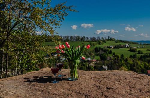 Featuring a garden, Dom z bali - Serafinówka offers accommodations in Tęgoborze. This property offers access to a terrace and free private parking. The villa has an outdoor fireplace and a sauna. With free Wifi, this 7-bedroom villa features a satellite flat-screen TV, a washing machine, and a fully equipped kitchen with a dishwasher and oven. Guests can take in the views of the mountain from the balcony, which also has outdoor furniture. There's also a seating area and a fireplace. For those times when you'd rather not eat out, you can cook on the barbecue. You can play billiards at the villa. Guests can also relax in the shared lounge area. Nowy Wiśnicz Castle is 23 miles from Dom z bali - Serafinówka, while Salt Mine in Bochnia is 27 miles from the property.